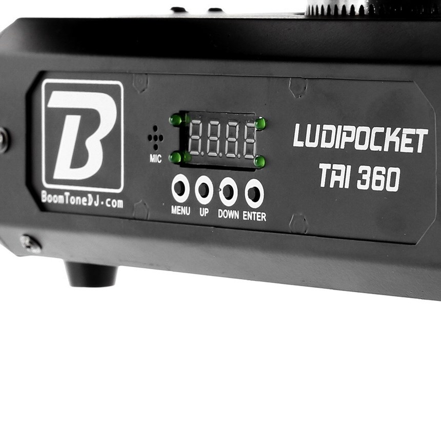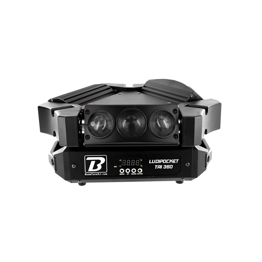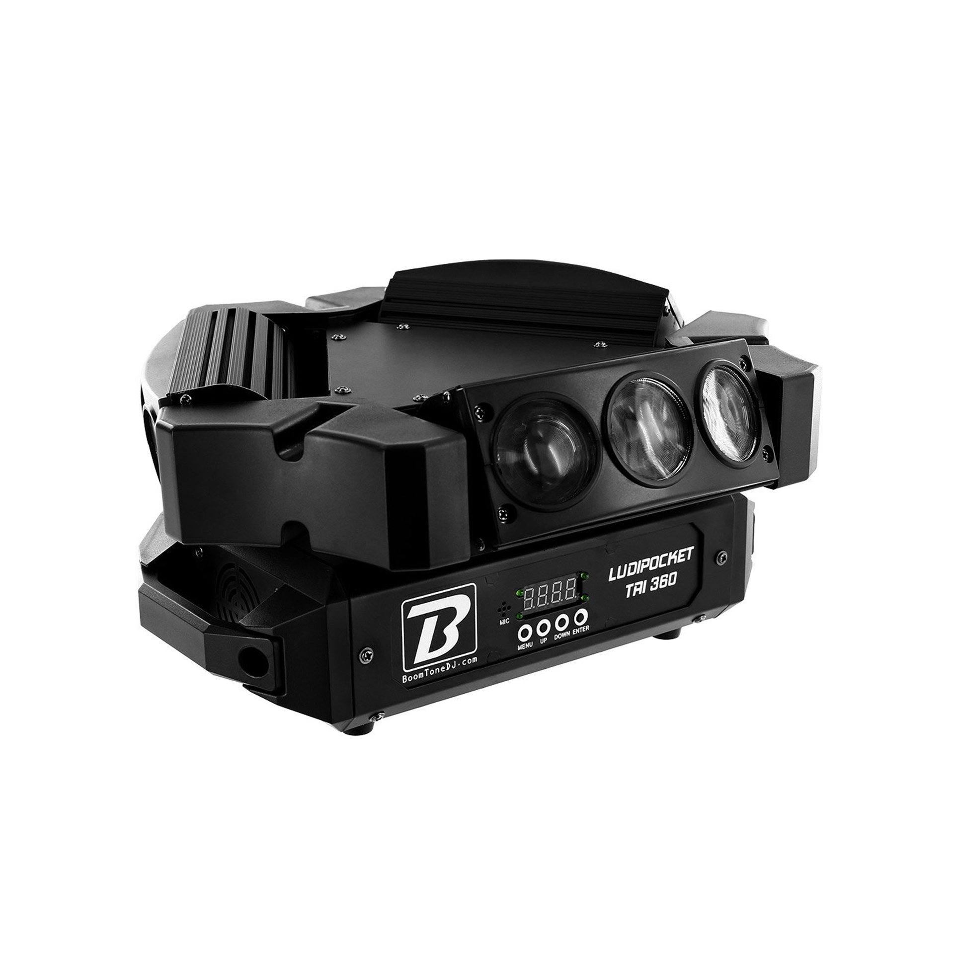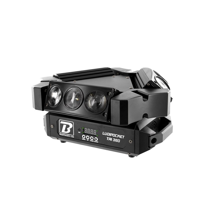 EFFETS LUMINEUX PROFESSIONNELS POUR UNE AMBIANCE INOUBLIABLE.Boostez vos événements avec le Ludipocket TRI 360 de BoomTone DJ, un jeu de lumière à LED RGBW 4-en-1 puissant et compact. Rotation infinie à 360°, contrôle DMX avancé et détection musicale offrent des effets Beam multifaisceaux spectaculaires. Facile à installer, il garantit une ambiance dynamique et personnalisée. Commandez-le maintenant !