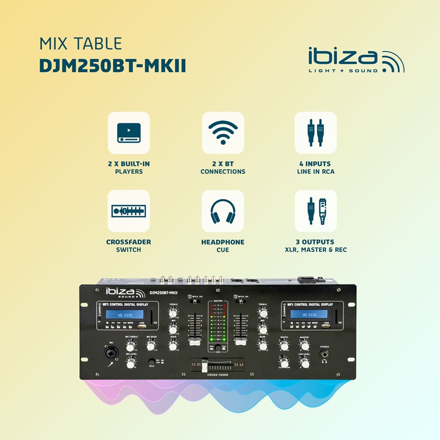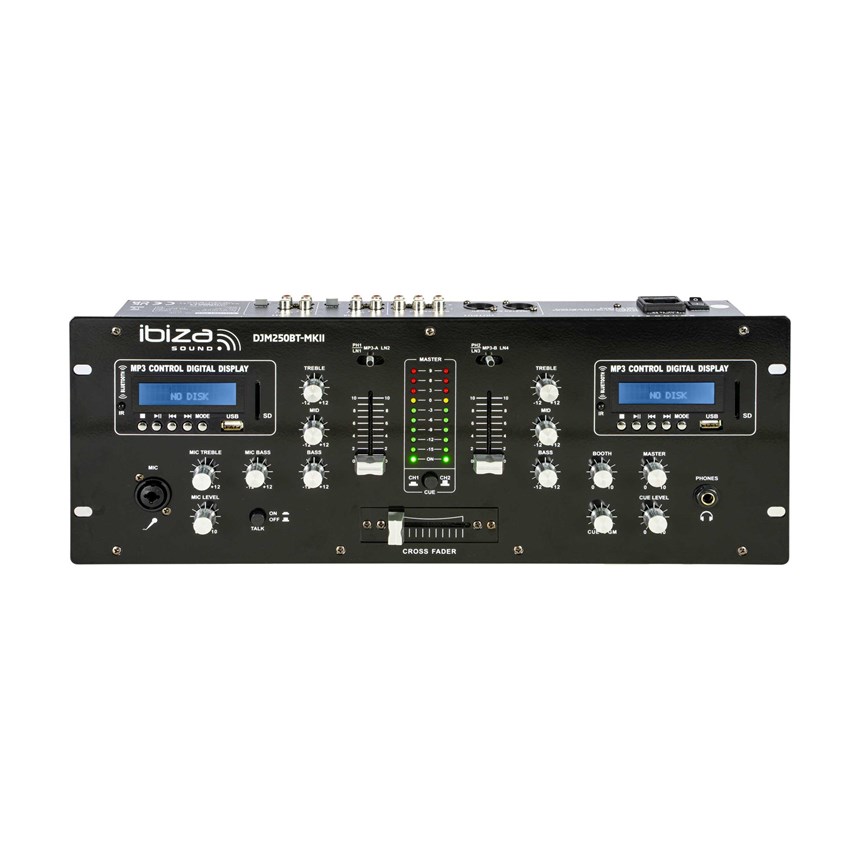 DUAL CONNECTIVITY FOR UNLIMITED MIXES.With its two channels for two sources (BT, USB, or SD) integrated with digital displays, this DJ mixer offers total flexibility. Its 19" format and multiple inputs make it an ideal choice for demanding DJs.