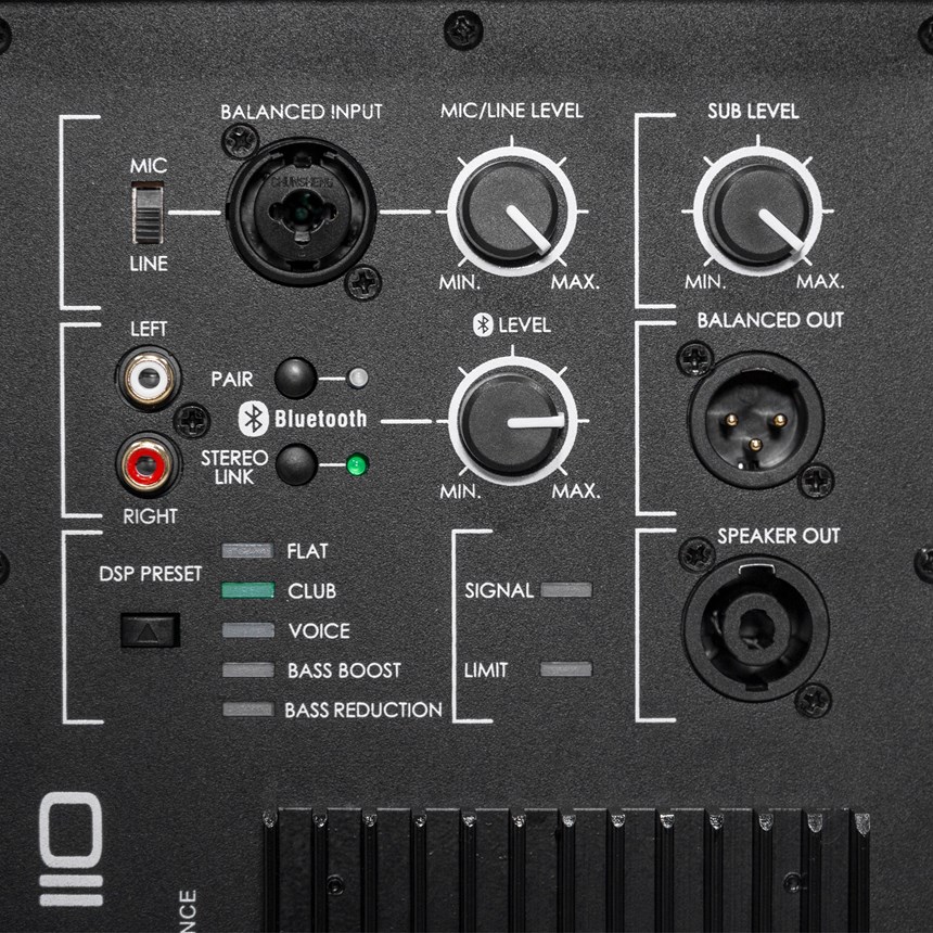 - DSP 5 MODES : Processeur intégré pour adapter le rendu sonore à chaque environnement (concert, mariage, conférence, DJ).