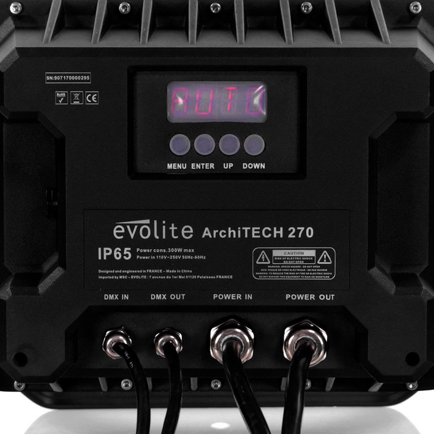 UNE PUISSANCE PROFESSIONNELLE POUR TOUS VOS ÉCLAIRAGES EXTÉRIEURS : Le projecteur LED RGB evolite archiTECH 270 offre une intensité lumineuse exceptionnelle grâce à ses 54 LED de 5W.Contrôlable en DMX et certifié IP65, il garantit performance, fiabilité et créativité pour toutes vos prestations extérieures.