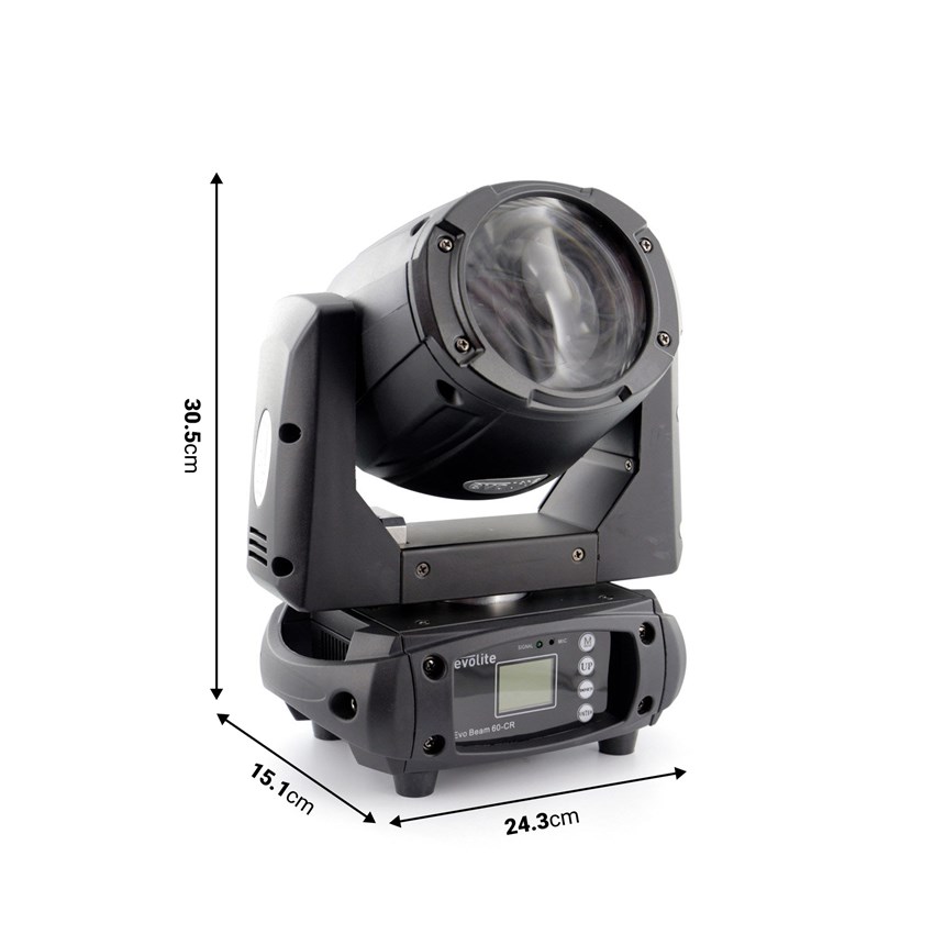 LIBÉREZ LA PUISSANCE DU FAISCEAU : La lyre LED EVOLITE Evo Beam 60-CR combine performance et compacité pour des shows spectaculaires.Sa LED de 60 W, son faisceau de 2°, son prisme rotatif 8 facettes, ses gobos et couleurs variés vous offrent un contrôle artistique total. Avec son écran TFT couleur, ses mouvements PAN/TILT larges, et ses modes DMX 10/12 canaux, cette lyre est parfaite pour DJ, clubs, prestataires ou événements live. Ultra mobile, fiable et puissante, elle transforme n’importe quelle scène en spectacle visuel captivant.