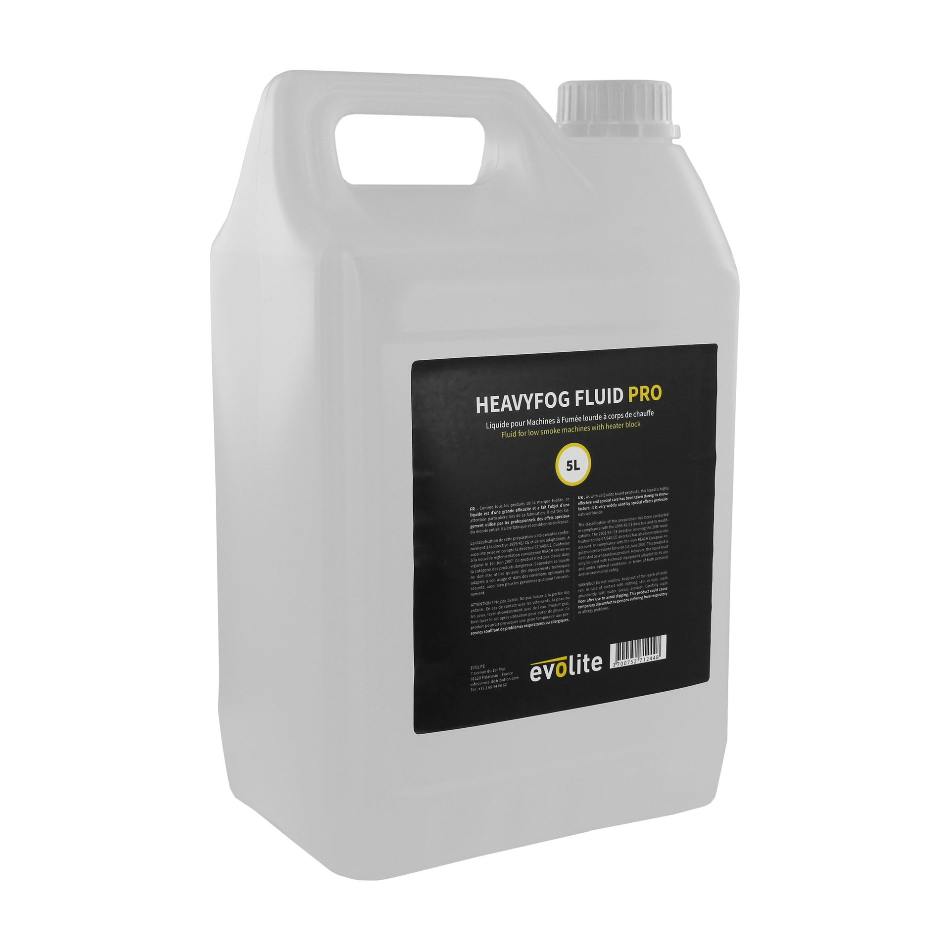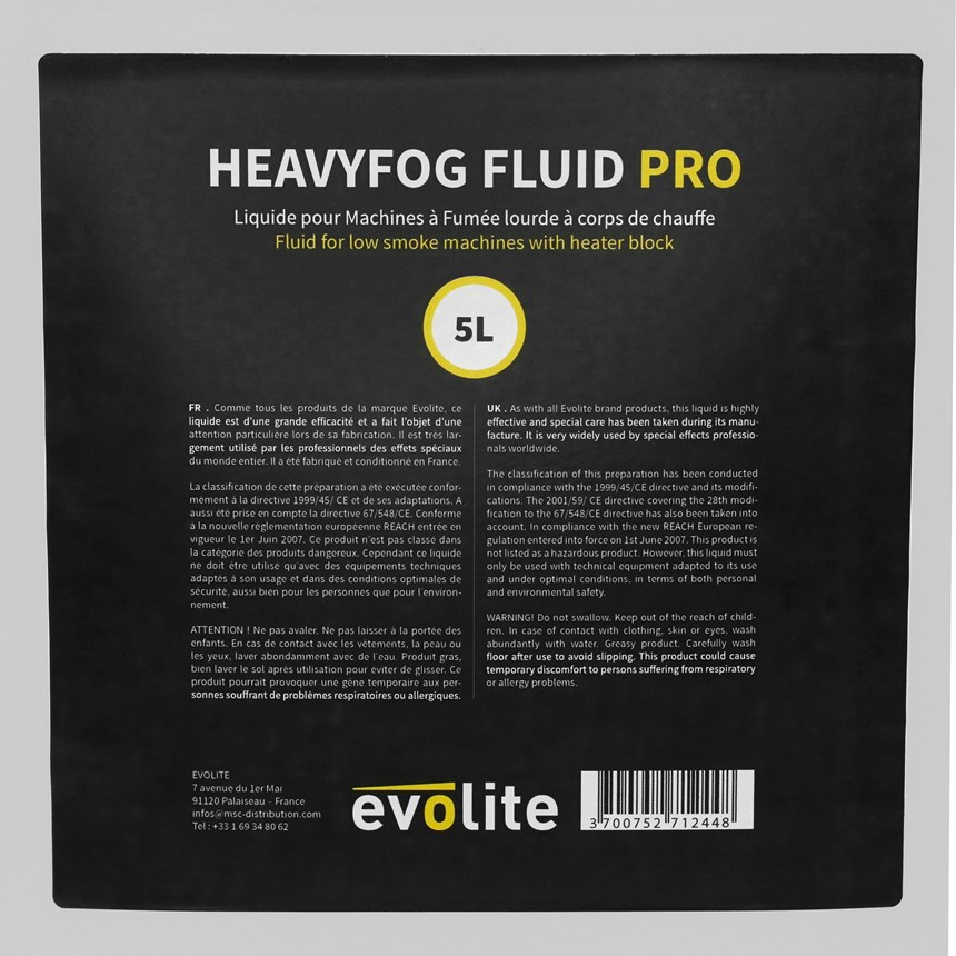 UNE FUMÉE LOURDE PROFESSIONNELLE POUR VOS SPECTACLES.Obtenez un effet visuel dense et très blanc grâce au liquide HeavyFog Fluid PRO 5L. Sa haute pureté assure la longévité de vos machines à fumée lourde tout en respectant les normes NF et CE. Bidon recyclable, facile à transporter et idéal pour toutes vos prestations. Commandez maintenant et sublimiez vos événements !