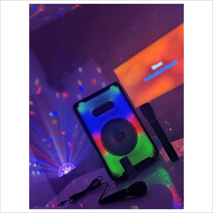 TRANSFORMEZ VOS SOIRÉES EN VÉRITABLE SHOW KARAOKÉ ! Cette enceinte 500W offre un son puissant avec effets LED intégrés.Bluetooth, USB, micro-SD et entrée ligne pour une compatibilité maximale. Fonctionne sur secteur ou batterie. Micro filaire et sans fil inclus pour chanter immédiatement. Lancez la musique et faites vibrer la fête !