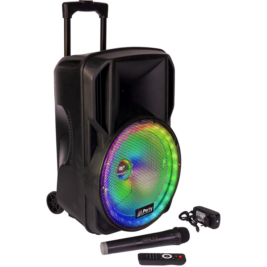 Profitez d’un système portable complet avec batterie intégrée, Bluetooth, lecteurs USB/SD et radio FM.Son haut-parleur 12’’ délivre un son puissant et clair, renforcé par des effets LED dynamiques. Le micro VHF inclus et les réglages graves/aigus assurent une utilisation simple et polyvalente.