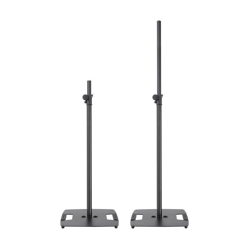 - STABILITÉ OPTIMALE : Base carrée en acier robuste assurant un maintien sécurisé pour vos enceintes ou éclairages, même sur sols irréguliers.