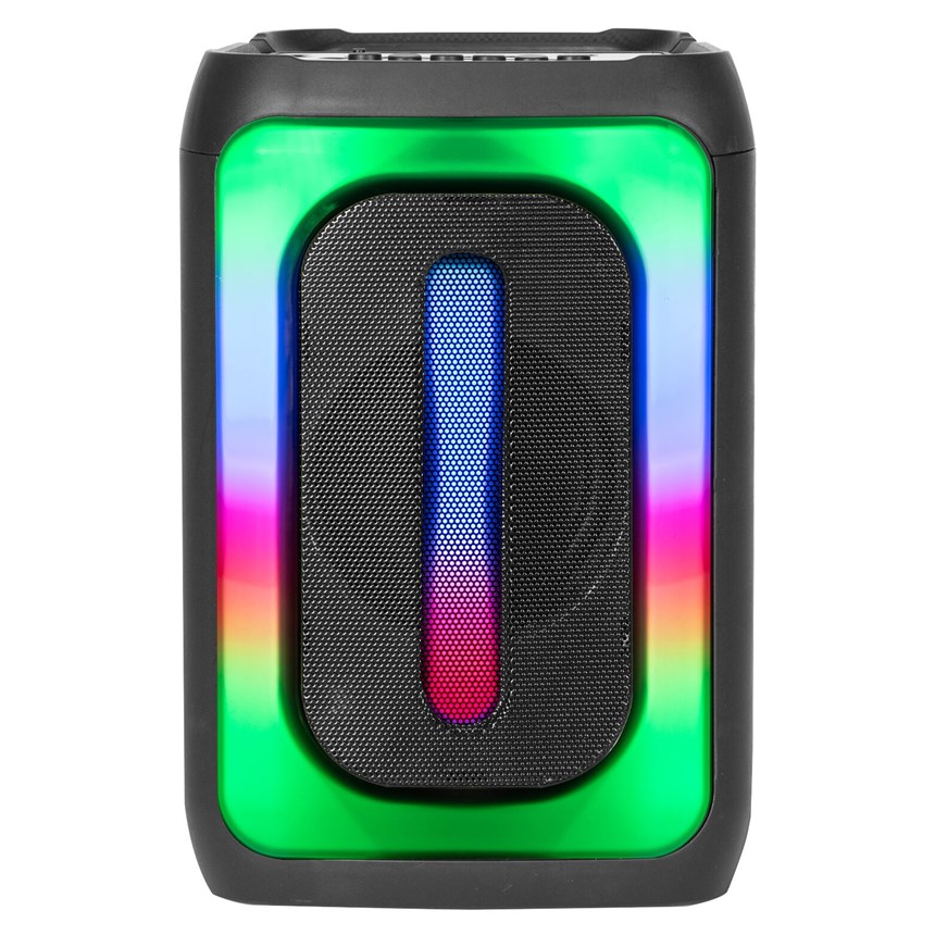 Profitez d’une enceinte compacte avec Bluetooth, TWS et lecture USB/microSD pour une expérience sonore stéréo immersive.Micro sans fil inclus pour karaokés et présentations. Jeu de lumière dynamique et batterie longue durée pour des fêtes et événements réussis. La chambre d’écho n’est ni désactivable ni réglable.