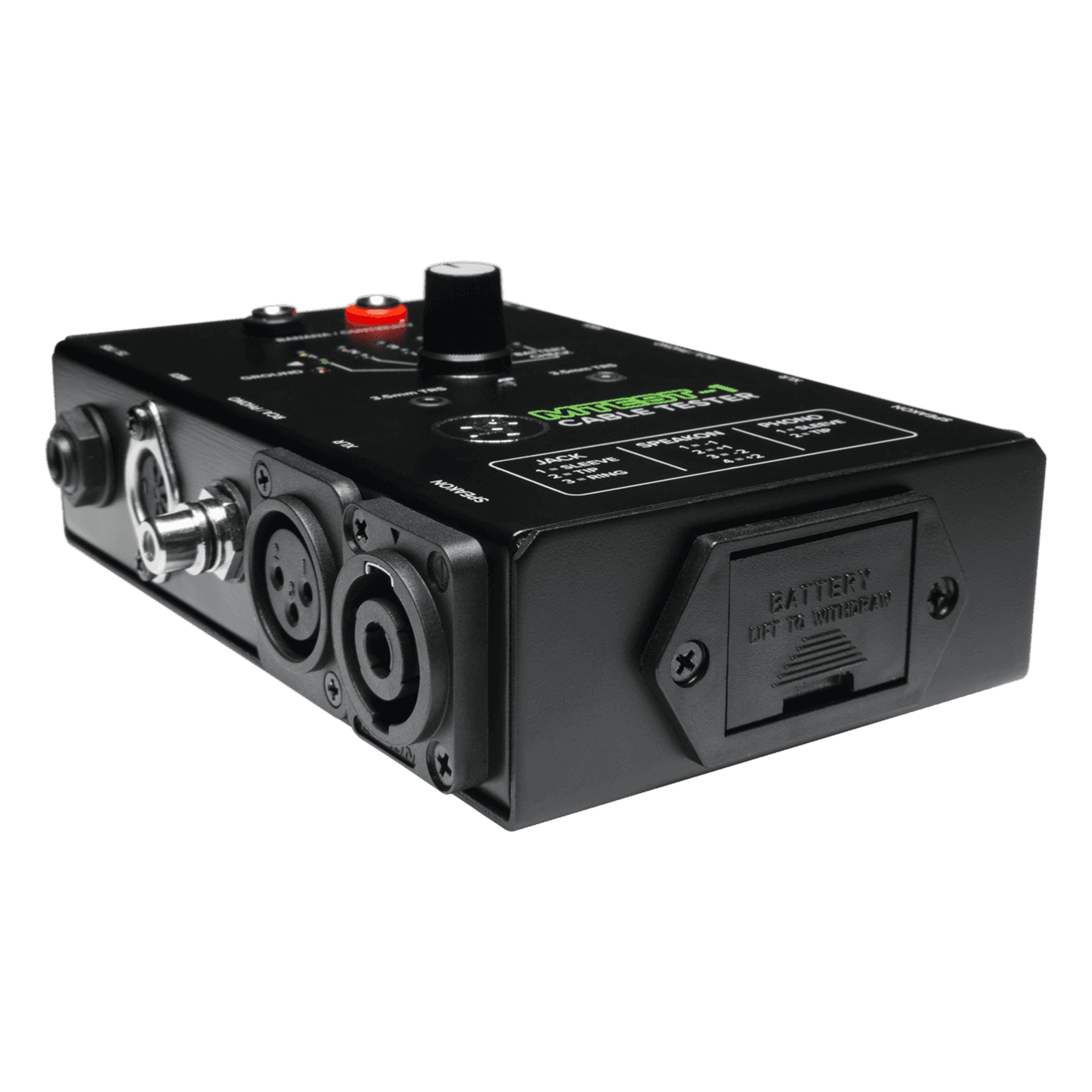 VÉRIFIEZ VOS CÂBLES EN UN INSTANT.Le testeur MACKIE MTEST-1 permet de contrôler rapidement jack, XLR, RCA, Speakon, MIDI et banane. Compact, léger et alimenté par pile 9 V, il assure une vérification fiable en studio ou sur scène, pour des connexions sûres et un son sans interruption.