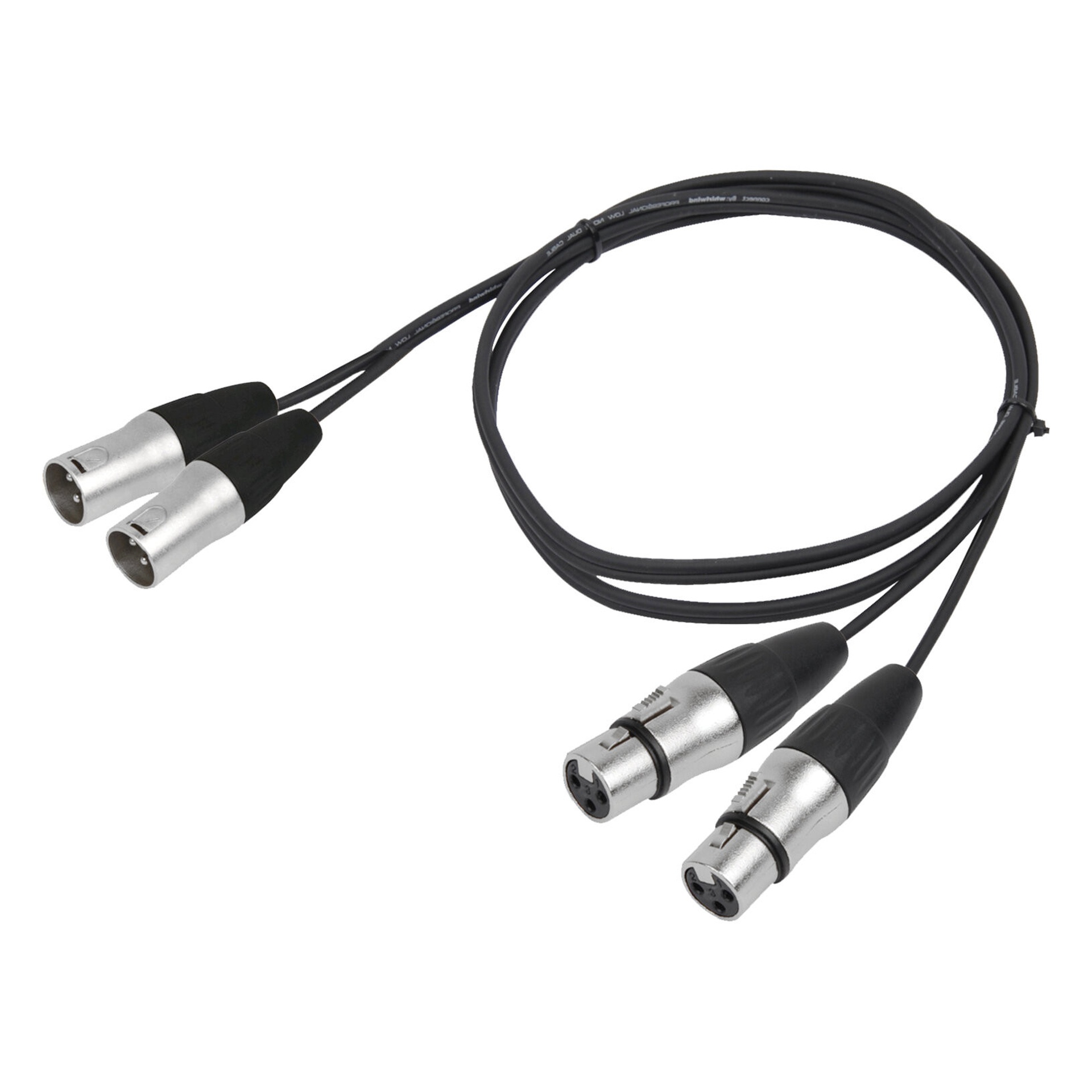 CÂBLE DE LIAISON PRO AUDIO.Le XLRM-XLRF-1.5X2 est un câble symétrique 2x XLR mâle vers 2x XLR femelle, conçu pour relier amplificateurs et mixeurs avec une transmission audio fiable et sans perte. Longueur 1,5 m, idéal pour les installations et les prestations live.