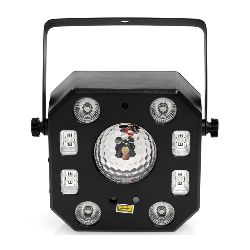 - SHOW LUMINEUX 5-EN-1 : Profitez d’une ambiance spectaculaire grâce à cinq effets intégrés : stroboscope, laser, crystal ball, UV et LED wash, réunis dans un seul appareil compact et puissant.