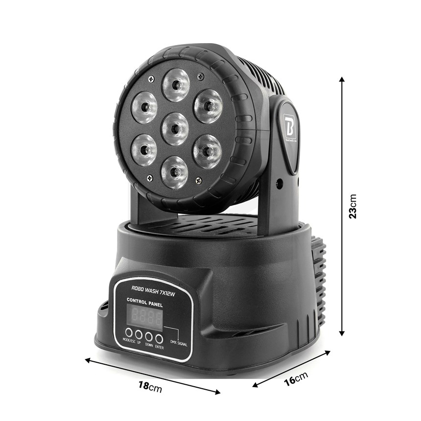 ACCUEILLEZ DES AMBIANCES LUMINEUSES SPECTACULAIRES DANS VOS ÉVÉNEMENTS.La lyre motorisée BoomTone DJ Robo Wash 7X12W diffuse un mélange homogène de couleurs grâce à ses 7 LED 4-en-1 (RGBW). Ses fonctions Dimmer, Strobe et ses mouvements PAN/TILT offrent un contrôle total de l’éclairage. Compacte et légère, elle s’installe facilement pour bars, clubs et discomobiles. Passez en mode automatique, musical ou DMX et transformez vos soirées.