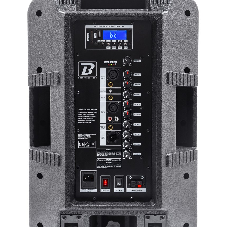 SONORISATION PORTABLE PUISSANTE ET POLYVALENTE.Profitez d’un son clair et puissant avec 600 W de puissance maximale et un haut-parleur 12''. Diffusez vos morceaux via Bluetooth, USB ou SD, et contrôlez vos performances grâce aux micros VHF inclus et aux effets Echo et Delay. Batterie intégrée jusqu’à 6 h et fonction TWS pour un son stéréo immersif. Transformez vos événements en expériences inoubliables : commandez votre TravelSound12-VHF maintenant !