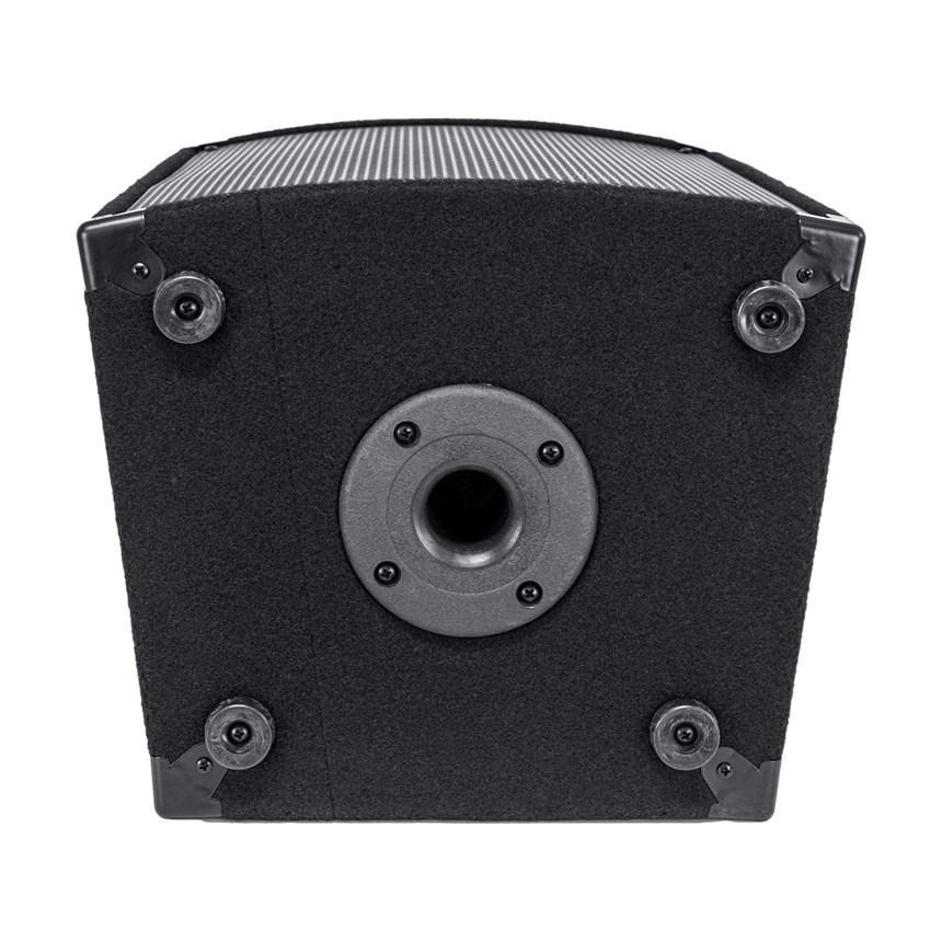 - CONCEPTION ROBUSTE : Structure trapézoïdale en bois recouverte de moquette amortissante et grille métallique pour une protection optimale sur scène ou en transport.