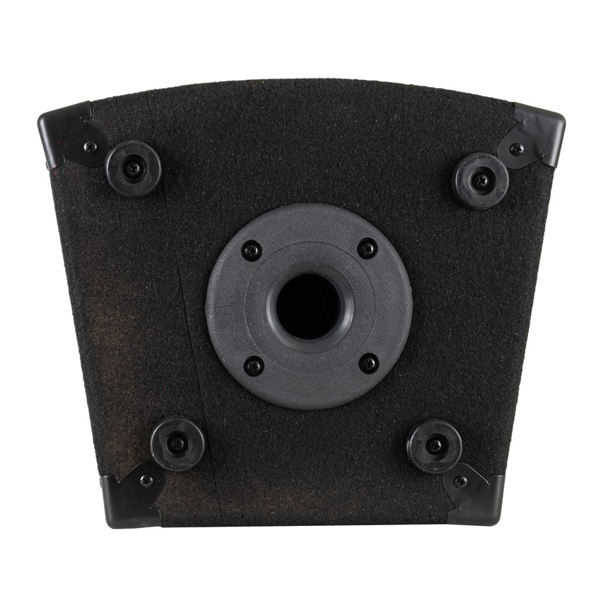 - CONCEPTION ROBUSTE : Structure trapézoïdale en bois recouverte de moquette amortissante et grille métallique pour une protection optimale sur scène ou en transport.