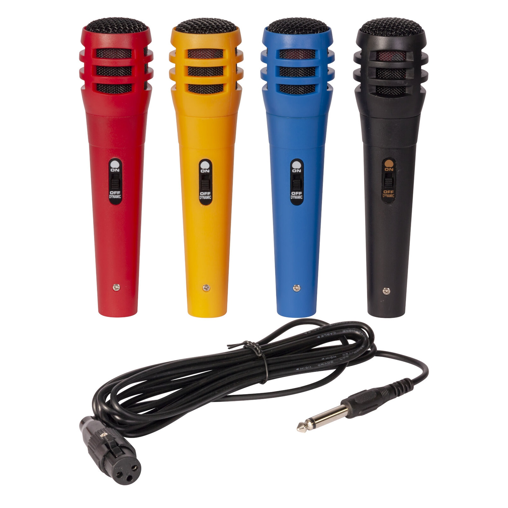 ANIMEZ VOS SOIRÉES KARAOKÉ À PLUSIEURS ! Ce set de 4 microphones dynamiques colorés (rouge, jaune, bleu, noir) est parfait pour chanter en groupe et différencier facilement chaque participant.Légers, solides et adaptés à la voix, ils offrent une utilisation simple pour fêtes, animations et événements. Chaque micro est livré avec son câble XLR / Jack 6,35 mm de 2,9 m. Lancez le karaoké dès maintenant !