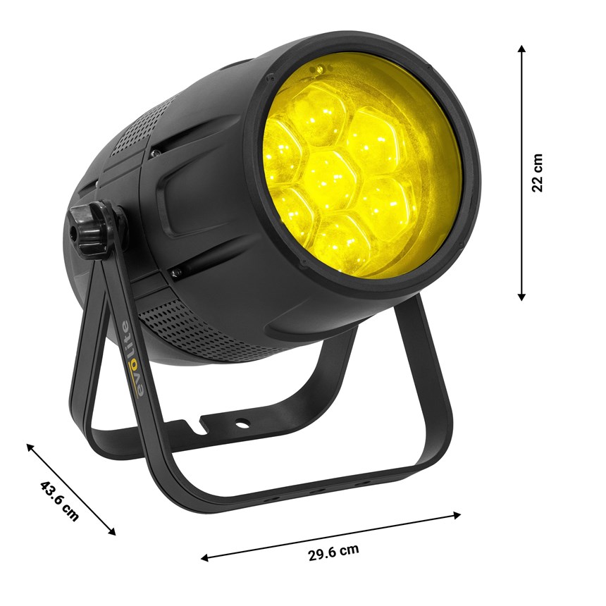 UN ÉCLAIRAGE COLORÉ ET PUISSANT POUR TOUTES VOS SCÈNES.Le projecteur LED EVOLITE IPAR740RGBW-Z combine 7 LED RGBW de 40 W avec un Zoom motorisé de 5° à 45° pour des effets précis et dynamiques. Compatible DMX/RDM et certifié IP65, il offre robustesse, polyvalence et rendu lumineux exceptionnel pour scènes, façades et événements.
