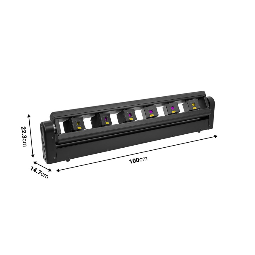- 6 FAISCEAUX MOTORISÉS : Créez des effets dynamiques avec 6 têtes LASER RGB capables de balayer la scène en éventail ou en lignes parallèles pour un rendu spectaculaire.