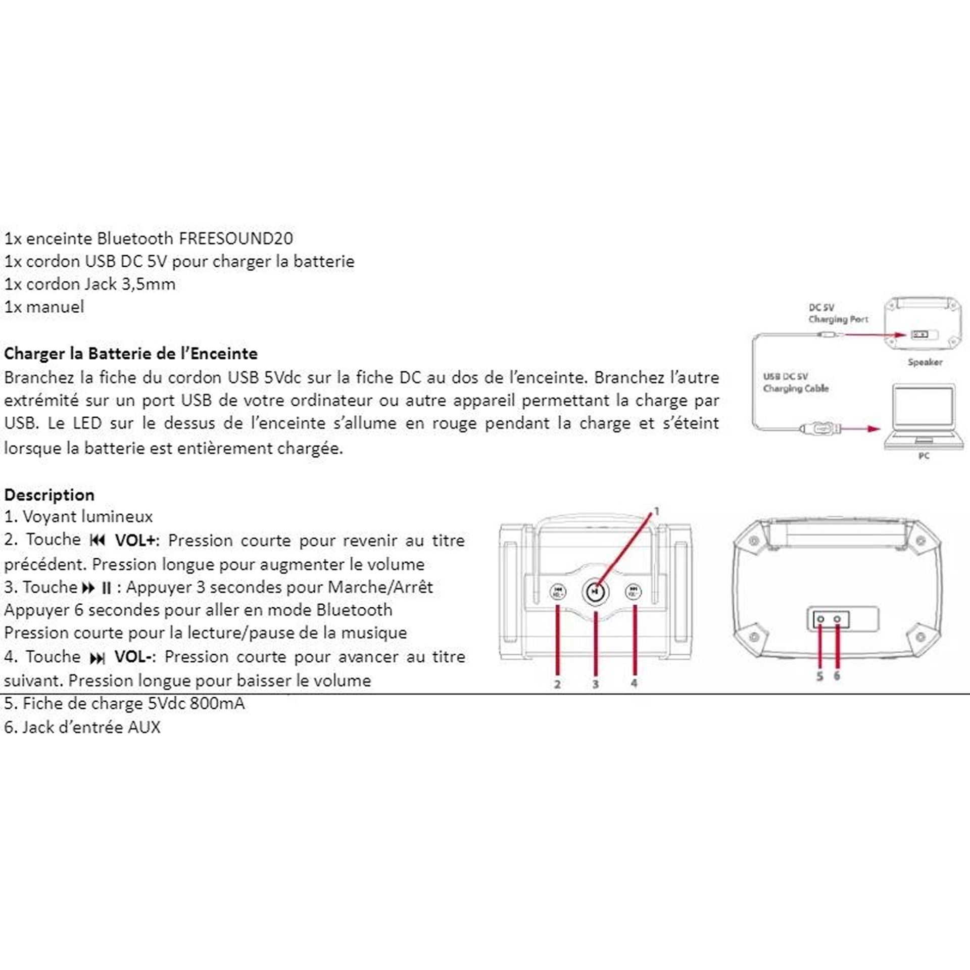 EMPORTER VOTRE MUSIQUE PARTOUT EN TOUTE LIBERTÉ ! Cette enceinte Bluetooth stéréo diffuse un son clair pour vos fêtes, pique-niques ou sorties plage.Batterie lithium rechargeable, commandes intégrées et entrée audio pour une compatibilité maximale. Conception IP44 résistante aux éclaboussures. Profitez de votre musique sans contrainte !