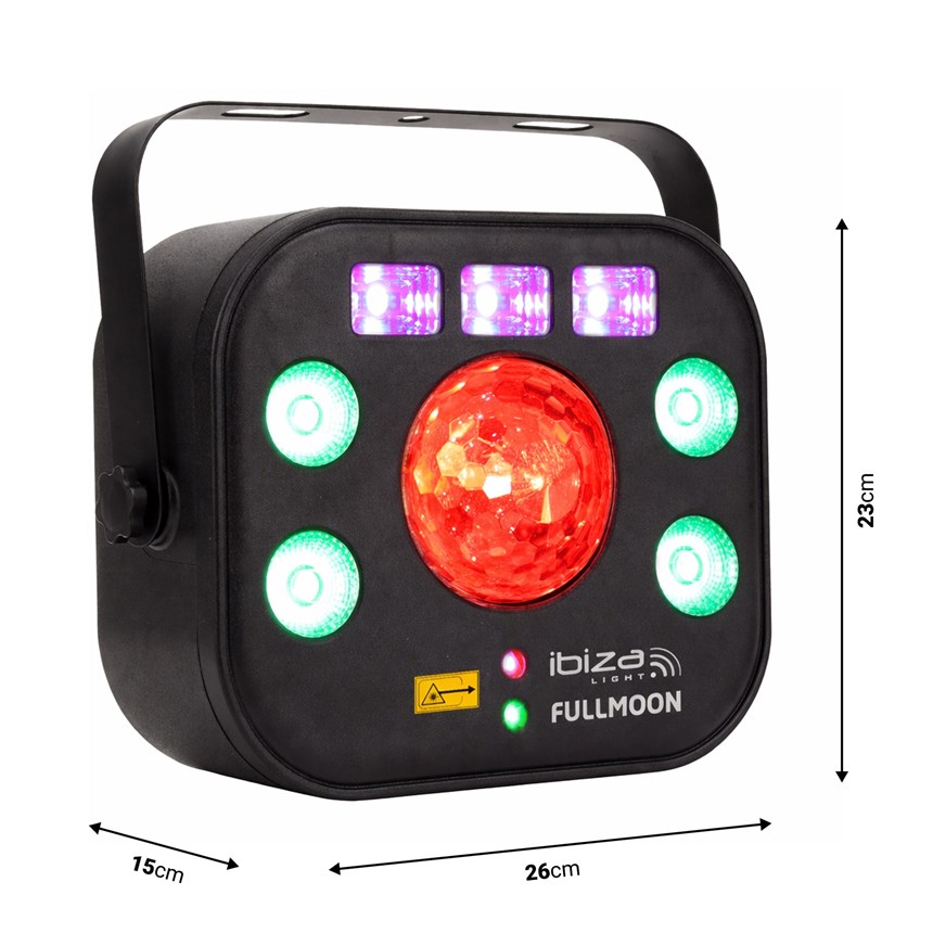 CRÉEZ DES SHOWS LUMINEUX SPECTACULAIRES ! Le FULLMOON combine Wash RGBW, UV, laser rouge/vert, stroboscope et effet Astro pour un rendu lumineux époustouflant.Compatible DMX 18 canaux, modes auto, audio et maître-esclave. Télécommande incluse pour un contrôle facile. Faites briller vos soirées et événements comme jamais !