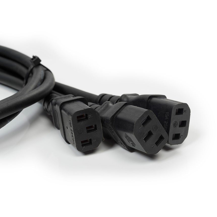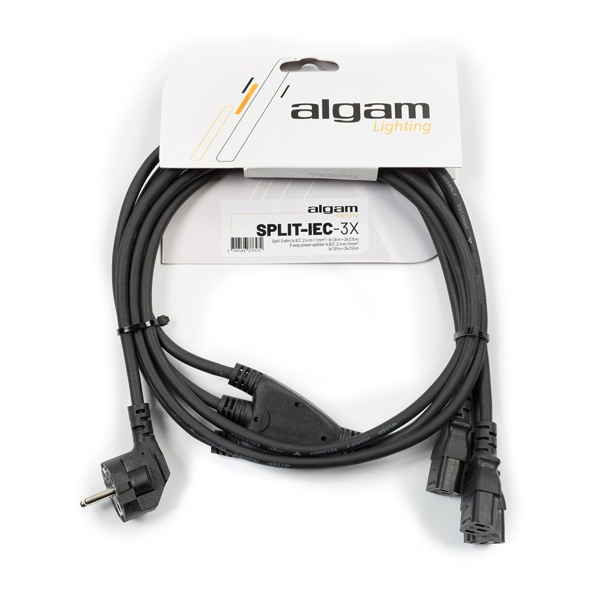 - ALIMENTATION MULTIPLE : ce câble Algam Lighting permet de brancher simultanément trois équipements grâce à ses trois connecteurs IEC intégrés, facilitant l’installation sur scène ou en événement.