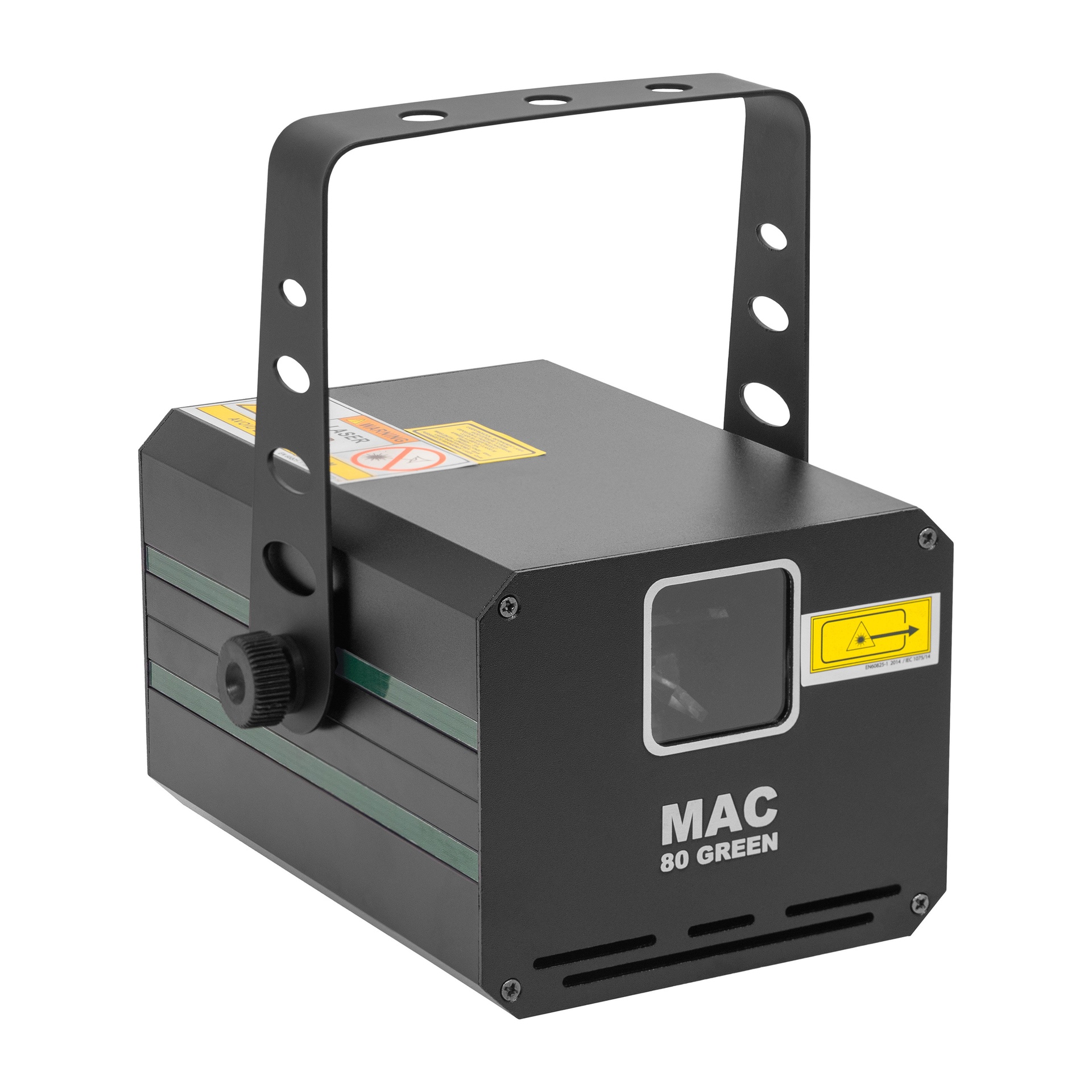 ACCUEILLEZ DES EFFETS LASER VERTS SPECTACULAIRES ! Transformez vos soirées et événements avec le MAC 80 Green de Mac Mah : un laser vert 80 mW puissant, sécurisé et simple à utiliser.Avec 200 programmes intégrés, modes automatique, sonores et DMX, profitez d’animations lumineuses époustouflantes. Son boîtier en aluminium et le système Scan Fail Safety garantissent robustesse et sécurité. Passez à l’action et illuminez vos événements dès maintenant !