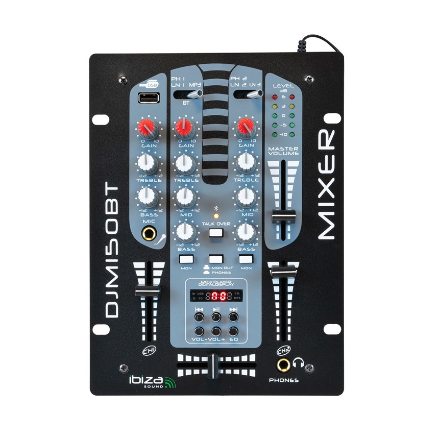 La table de mixage DJM150USB-BT complète parfaitement ce système. Elle propose 5 canaux avec 2 entrées lignes, 2 phonos et un lecteur USB-MP3 avec afficheur digital intégré. La fonction BLUETOOTH permet la diffusion sans fil depuis smartphone ou tablette.