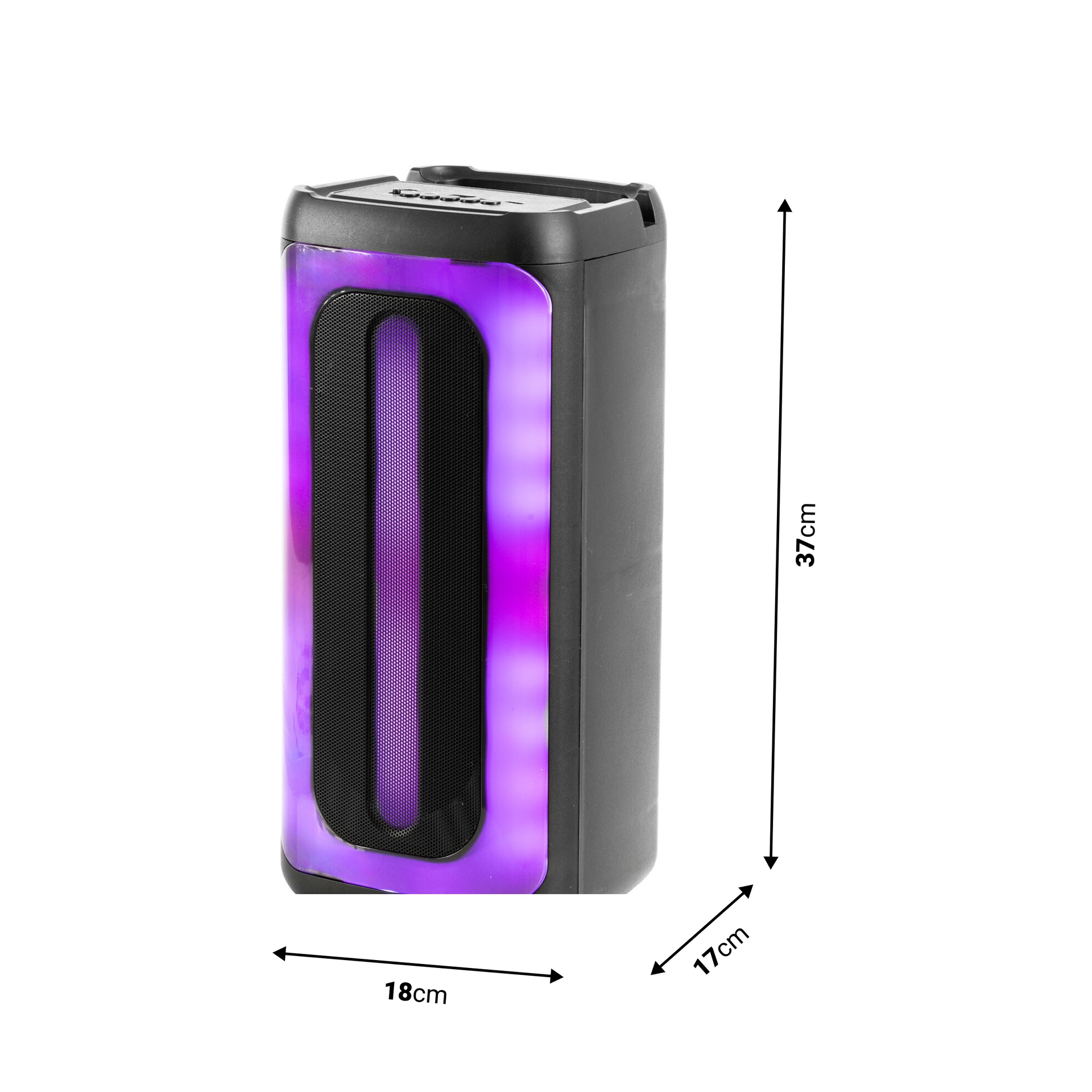 Profitez d’une enceinte portable alliant Bluetooth, TWS et lecture USB/microSD pour une expérience sonore immersive.Micro sans fil inclus pour karaokés et présentations. Jeu de lumière dynamique et batterie longue durée pour des fêtes et événements réussis. La chambre d’écho n’est ni désactivable ni réglable.